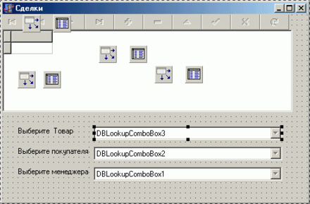 Напишем приложение, позволяющее вводить и редактировать поля таблицы сделки. Изменим название формы на Сделки, введем дополнительные DBLoolUpComboBox и установим их свойства
