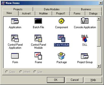 Добавим в проект модуль данных с помощью операции File-New-Data Modules.