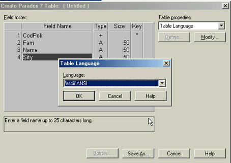 Для каждой таблицы выбираем подходящий языковый драйвер
