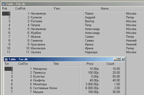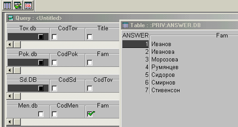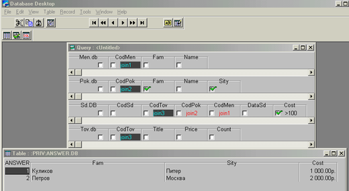 Для формирования запросов выберем File - New – QBE Query, Выберем все наши таблицы