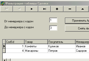 Для фильтрации данных по коду сделки воспользуемся обращением к содержимому поля CodSd.