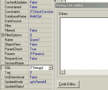Можно вручную выбрать SQL – TString и вручную набрать в редакторе текст запроса на языке SQL, но гораздо удобнее воспользоваться встроенным в Delphi инструментом SQL Builder.