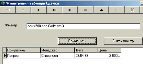 Изменим свойства таблицы Sd.db: Filtred:=true и Filter – cost>1000.
