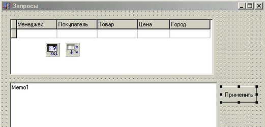 Сформируем запрос на лету. Добавим Memo-поле, кнопку.