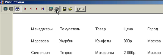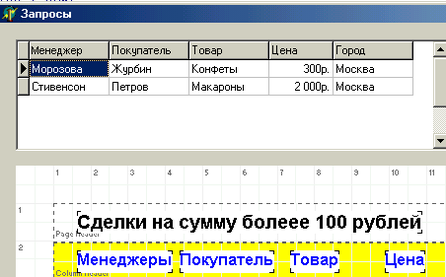 Аналогично добавим еще четыре пары QRDBText и соответствующие заголовки: Fam_1 – Покупатели, Title – Товары, Cost – Цена, Sity – Город.