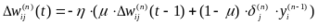 Иногда для придания процессу коррекции весов некоторой инерционности, сглаживающей резкие скачки при перемещении по поверхности целевой функции, (9) дополняется значением изменения веса на предыдущей итерации