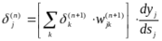 Третий множитель sj/wij, очевидно, равен выходу нейрона предыдущего слоя yi(n-1).