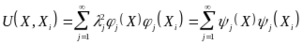 где j(X) — линейно независимая система функций; j — действительные числа, отличные от нуля для всех j = 1, 2, … ; Xi — точка, соответствующая i-му объекту из обучающей последовательности. Предполагается, что j(X) и U(X, Xi) ограничены при XV1 V2; j(X)=jj(X).