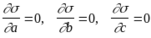Величина является функцией трех переменных a, b, c. Необходимым и достаточным условием существования минимума этой функции является равенство нулю частных производных функции по всем переменным, то есть: