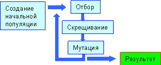 Чтобы смоделировать эволюционный процесс, сгенерируем вначале случайную популяцию - несколько индивидуумов со случайным набором хромосом (числовых векторов). Генетический алгоритм имитирует эволюцию этой популяции как циклический процесс скрещивания (посредством кроссовера) индивидуумов и смены поколений.