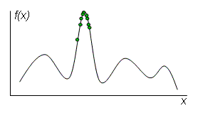 Схождением называется такое состояние популяции, когда все строки популяции почти одинаковы и находятся в области некоторого экстремума. В такой ситуации кроссовер практически никак не изменяет популяции. А вышедшие из этой области за счет мутации особи склонны вымирать, так как чаще имеют меньшую приспособленность, особенно если данный экстремум является глобальным максимумом. Таким образом, схождение популяции обычно означает, что найдено лучшее или близкое к нему решение.