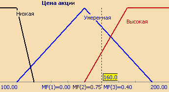 Рис. 7. Описание лингвистической переменной "Цена акции".