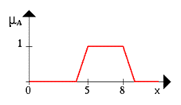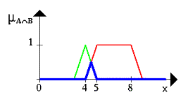 Проиллюстрируем нечеткое множество между 5 и 8 И (AND) около 4 (рис. 2, жирная линия).
