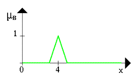 Пусть A нечеткий интервал между 5 до 8 и B нечеткое число около 4, как показано на рис.1.