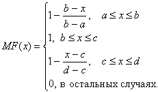 Аналогично для задания трапецеидальной функции принадлежности необходима четверка чисел (a,b,c,d):