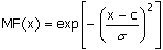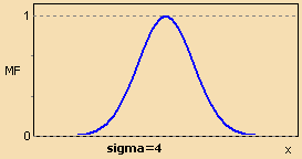 и оперирует двумя параметрами. Параметр c обозначает центр нечеткого множества, а параметр σ отвечает за крутизну функции.