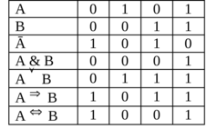 Все рассмотренные логические операции иллюстрируются в сводной таблице ##, где булевские числа true и false заменены 1 и 0 соответственно.