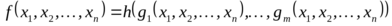 называется подстановка в функцию от m переменных m функций от n одних и тех же переменных. Например, для функций