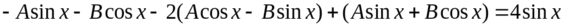 Приравнивая коэффициенты при синусах и косинусах в правой и левой частях уравнения, получаем: 2А=0, 2В=4. Следовательно В=2. Тогда