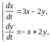 удовлетворяющее начальным условиям x(0)=1, y(0)=1.