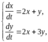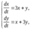 удовлетворяющее начальным условиям x(0)=1, y(0)=1.