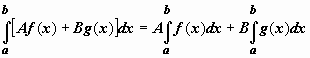 1. Линейность. Если функции y = f(x), y = g(x) интегрируемы по отрезку [a,b] , то по этому отрезку интегрируема их линейная комбинация A f(x) + B g(x) (A, B = const), и