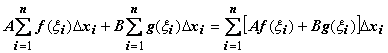 . Так как существуют пределы интегральных сумм, стоящих в левой части равенства, то существует предел линейной комбинации этих сумм, следовательно, существует предел правой интегральной суммы, откуда следует истинность и утверждения, и равенства.