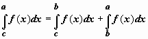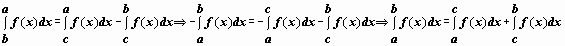 Свойство аддитивности остаётся верным при любом расположении точек, если только функция интегрируема по самому широкому интервалу. Пусть, например, c < b < a, и f(x) интегрируема по [c, a]. Тогда, по доказанному,