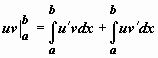 . Функция в левом интеграле имеет первообразную uv, по формуле Ньютона-Лейбница