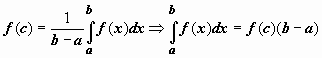 такая, что площадь криволинейной трапеции ABCD равна площади прямоугольника с основанием [a,b] и высотой f(c) (на рисунке выделен цветом).
