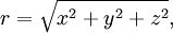 r - расстояние от O до P', ортогональной проекции точки P на плоскость XY. Или то же самое, что расстояние от P до оси Z.