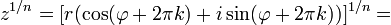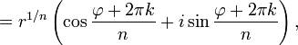 Эта формула применима при вычислении корней n-ой степени из комплексного числа.