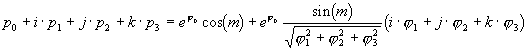 Как и в случае комплексных чисел, логарифм кватерниона неоднозначен и сферично - периодичен. Отбрасывая сферично-периодичную составляющую в ln(p), и зная покомпонентное представление