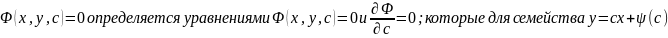 определяет дискриминантную кривую, касательными к которой будет общие решения (по отношению к ним дискриминантная кривая - огибающая).