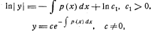 В линейном однородном уравнении переменные разделяются: И интегрируя получаем