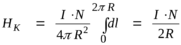 Величина напряженности магнитного поля в центре N круговых токов короткой катушки индуктивности может быть найдена по закону Био-Савара-Лапласа