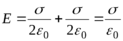 = 0 т. к. поля, созданные разноименно заряженными параллельными пластинами, направлены противоположно друг другу; между плоскостями