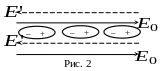 происходит поляризация диэлектрика, в результате которой возникает поле связанных зарядов, направленное против внешнего поля (см. рис. 2).