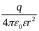 b) напряженность поля точечного заряда q, окруженного диэлектриком, E=