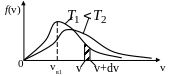 На рис.4 представлен вид функции f(v) для двух температур. Характерно, что f(v), начинаясь от нуля, достигает максимума при vВ и затем асимптотически стремится к нулю.