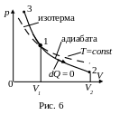 а диаграмме PV линия, изображающая адиабатический процесс, называется адиабатой (рис.6.). Так как > 1, то адиабата идет круче, чемизотерма, уравнение которой PV=const. Процесс 3-1-2 соответствует адиабатическому расширению газа. В этом случае