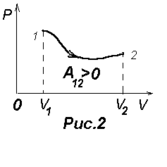 графически она изображается площадью фигуры, лежащей под кривой P(V) (Рис.2). Таким образом, работа не определяется только начальным и конечным состояниями газа, а зависит от всего хода процесса. Следовательно, криволинейный интеграл (7) зависит от пути интегрирования и поэтому подынтегральное выражение