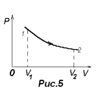 Процесс 1-2 (см.рис.5) соответствует изотермическому расширению газа, в этом случае Q12>0 и A12>0. Обратный процесс 2-1 соответствует изотермическому сжатию газа, для него Q12<0 и A12<0.