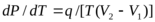 Уравнение Клапейрона-Клаузиуса выражает связь наклона кривой равновесия двух фаз с теплотой фазового перехода q и изменением фазового объема V2-V1: