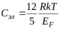 Средняя энергия теплового движения, равная kT, составляет при комнатной температуре 1/40 эВ. Такая энергия может возбудить только малую часть электронов, находящихся на самых верхних энергетических уровнях, примыкающих к уровню Ферми. Энергия Ферми EF для хорошо проводящих металлов составляет 6 эВ [см. (7.4) и комментарий этой формулы]. Действительно, расчёт показывает, что молярная теплоёмкость электронного газа