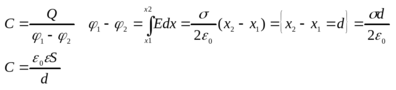 Конденсаторы устройства способные накапливать значительные по величине заряды. Емкость конденсатора – физическая величина равная отношению заряда Q накопленного в конденсаторе к разности потенциалов между его обкладками. C=Q/(1-2). для плоского кон-ра.