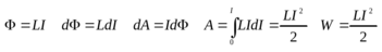 Работа по перемещению проводника с током равна произведению тока на магнитный поток пересечённый движущимся проводником.