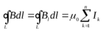 Циркуляция вектора В по произвольному замкнутому контуру равна произведению магнитной постоянной на сумму токов охватываемых этим контуром.