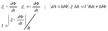 Работа по перемещению проводника с током равна произведению тока на магнитный поток пересечённый движущимся проводником.