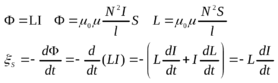Сцеплённый с контуром магнитный поток Ф прямо пропорционален току в проводнике Ф=LI, где коэффициент пропорциональности L –называется индуктивностью контура. Для бесконечно длинного соленоида
